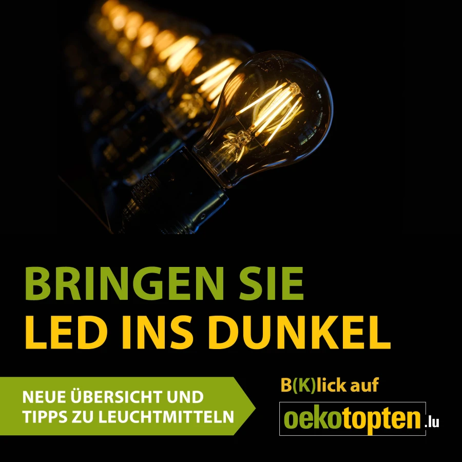 Seit dem ersten Verbot konventioneller Glühlampen 2009, hat die EU weitere energieintensive Leuchtmittel schrittweise verboten. Diese werden nun nun weitgehend durch LED ersetzt. Um Verbraucher:innen eine Übersicht über das aktuelle Angebot effizienter LED-Leuchtmittel auf dem Markt zu geben, hat Oekotopten.lu seine Leuchtmittelliste mitsamt Ratgeber komplett aktualisiert. Read More