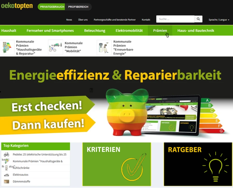 Kommunale Prämien für Verbraucher:innen jetzt noch übersichtlicher! Auf Wunsch der Gemeinden wurden im Laufe der Jahre weitere Informationen über Zuschüsse wie etwa für Photovoltaik-Anlagen und umweltschonende Fortbewegungsmittel, hinzugefügt. Die Liste wurde nunmehr in drei Unterkategorien aufgeteilt: „Haushaltsgeräte & Reparatur“, “Elektromobilität“ und “Energie/Heiztechnik”. Dies ermöglicht gezieltere Suchen. Read More