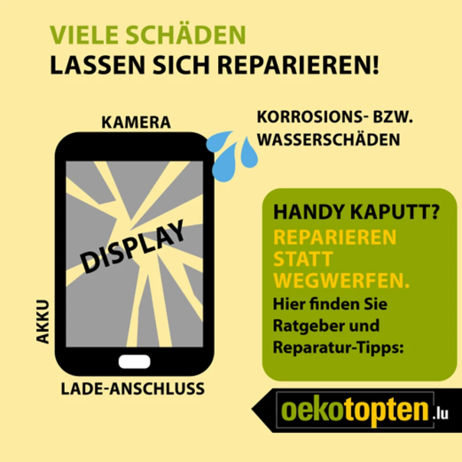 Nicht nur Oekotopten.lu stellt das Thema Reparatur verstärkt ins Schaufenster. Im Rahmen ihrer Partnerschaften mit Oekotopten.lu geben die zwei größten Telekommunikationsanbieter auf dem Luxemburger Markt nun ebenfalls die Reparierbarkeit ihrer Smartphones auf ihren jeweiligen Internetseiten bzw. in ihren Verkaufsstellen an. Oekotopten.lu hat sie über das Thema informiert. Read More