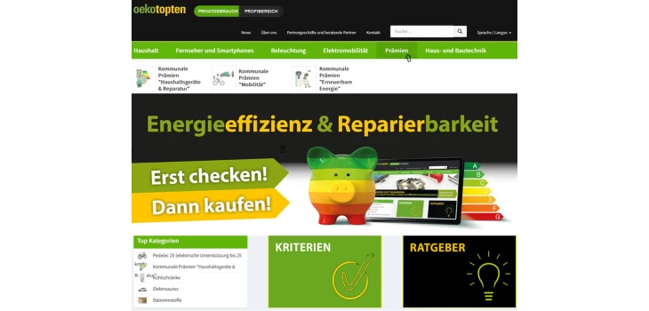 Ursprünglich für Verbraucher:innen gedacht, ist diese Liste mittlerweile auch zu einem Hilfsmittel für Gemeinden geworden, die ihren Bürger:innen neue Prämien anbieten wollen oder an einer Aktualisierung ihrer Kriterien arbeiten und sich dabei an den Beispielen aus anderen Gemeinden orientieren wollen. Ebenso nutzen viele Geschäfte diese Listen, um ihre Kunden auf kommunale Prämien aufmerksam zu machen und sie zum Kauf von effizienteren und nachhaltigeren Produkten anzuregen.